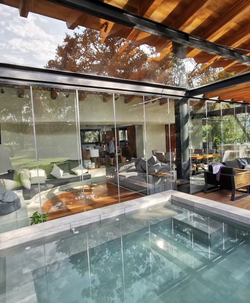 A CLAROFLEX oferece sistemas de envidraçamentos que não tem seu peso suportado pelo teto, e sim pela parte inferior, sendo assim, não limitam a escolha de materiais de construção e não limitam a escolha de acessórios para portas.